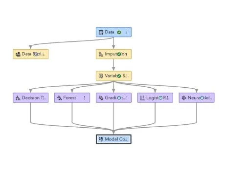 Data preprocessing for our dataset encompassed essential steps involving data exploration, imputation, and variable selection nodes. The Variable Selection node played a pivotal role in determining which input variables were accepted and rejected. Meanwhile, the Imputation node was employed to address missing data, and the Data Exploration node facilitated feature selection. No transformations techniques were applied to any of the input data besides handling missing inputs.