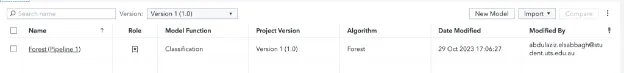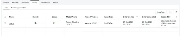 - Registration of the models which involved uploading the model files, defining input and output variables, as well as specifying other model properties.